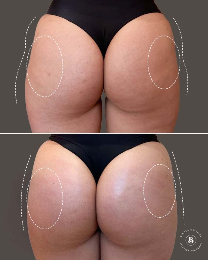 Atua simultaneamente em volume, flacidez, celulite e hip dips, melhorando a textura da pele e a hipertrofia muscular, sem necessidade de cirurgias invasivas ou resultados artificiais.
